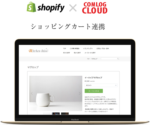 「shopify」で販売したい商品を登録したら、コムログクラウドの管理画面で設置のためのボタンを押すだけ。