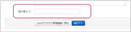 お申し込みフォームの紹介者コードの欄に、ご紹介者様からおくられてきた