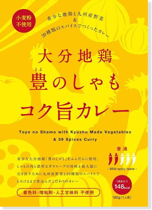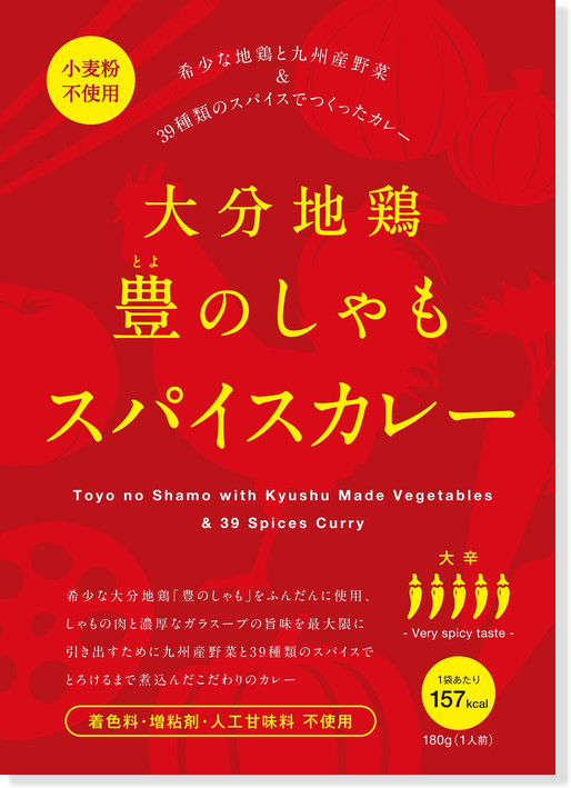 大分特産地鶏「豊のしゃも」の鶏肉とガラスープをふんだんに使い、玉ねぎをベースにカレー粉を使わず39種類のスパイスで作り上げたこだわりのスパイスカレー。