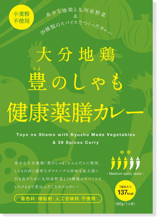 小麦粉不使用、小麦粉だけでなく大豆などの特定原材料も不使用、人工甘味料や着色料、増粘剤などの人工添加物も一切不使用の、ヘルシーで低カロリーなスパイスカレーです。