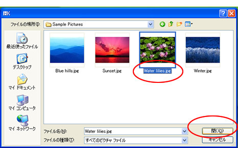 小さくしたい画像ファイルを選択し→「開く」をクリック