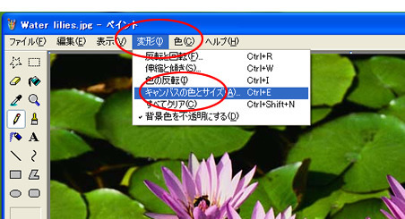 「変形」から→「キャンバスの色とサイズ」をクリック