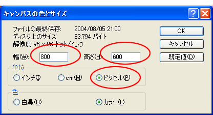 (Vistaのペイントでは、「サイズ変更/傾斜」になっています。)