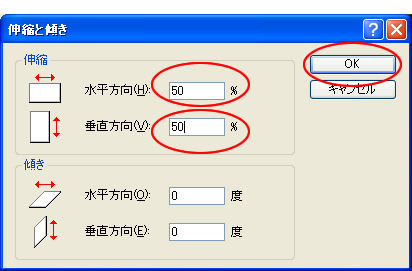 ( ここでは半分の大きさになるように、50%と入力しています。 )