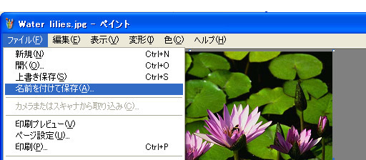 画像が縮小されたら、「ファイル」より「名前を付けて保存」をクリック。