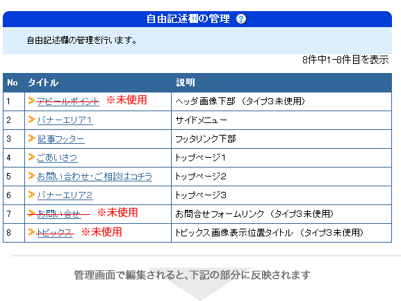 自由記述欄の表示箇所は、下記のようになっています。