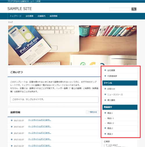 メニューボックス(メニューの1塊)を任意に複数設定出来るようになりました。