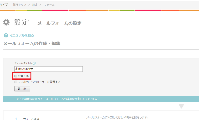 メールフォームに公開・非公開の設定をする機能を追加しました。