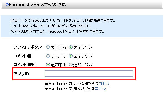 アプリIDを設定することでFacebookコメント欄の管理ができます。