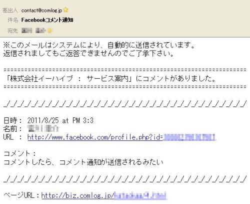 | Facebookのコメント通知 |