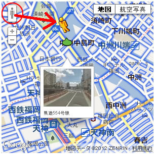 Googleマップ(画像1)での赤丸部分をドラック&ドロップ(画像2)していただくことで、ストリートビューをご利用(画像3)いただけます。