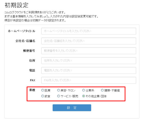 - 初期設定にて、業種を選択できるようになりました