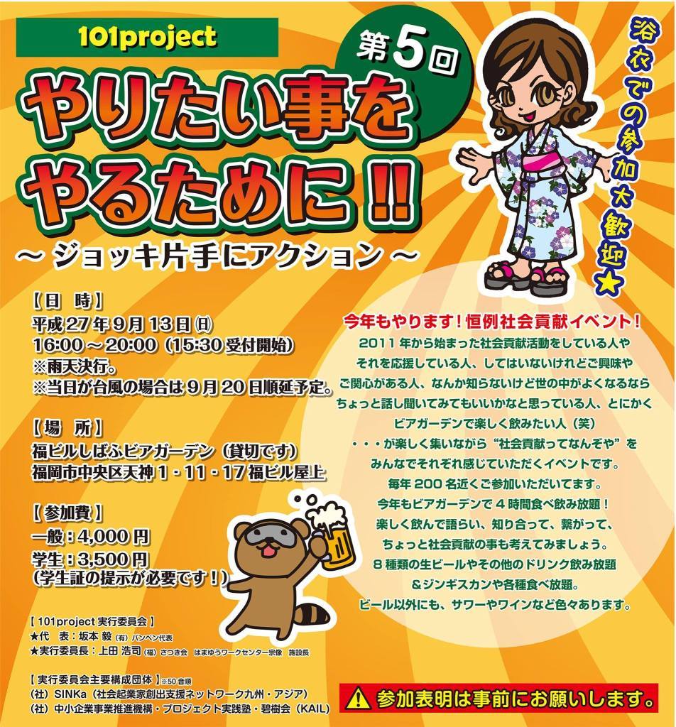 101プロジェクトが9月13日日曜日 福ビルビアガーデンで開催されます。