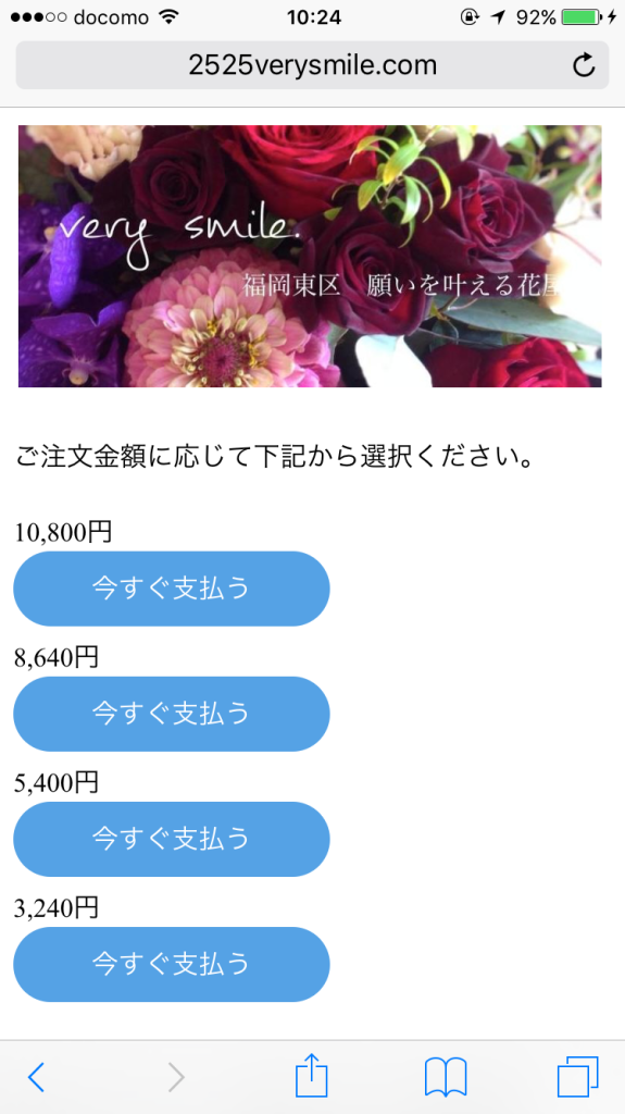 (※このページは、ホームページで作る必要があります。スマッポンだけでは実現しません)そして、金額を選んで、クリックすると