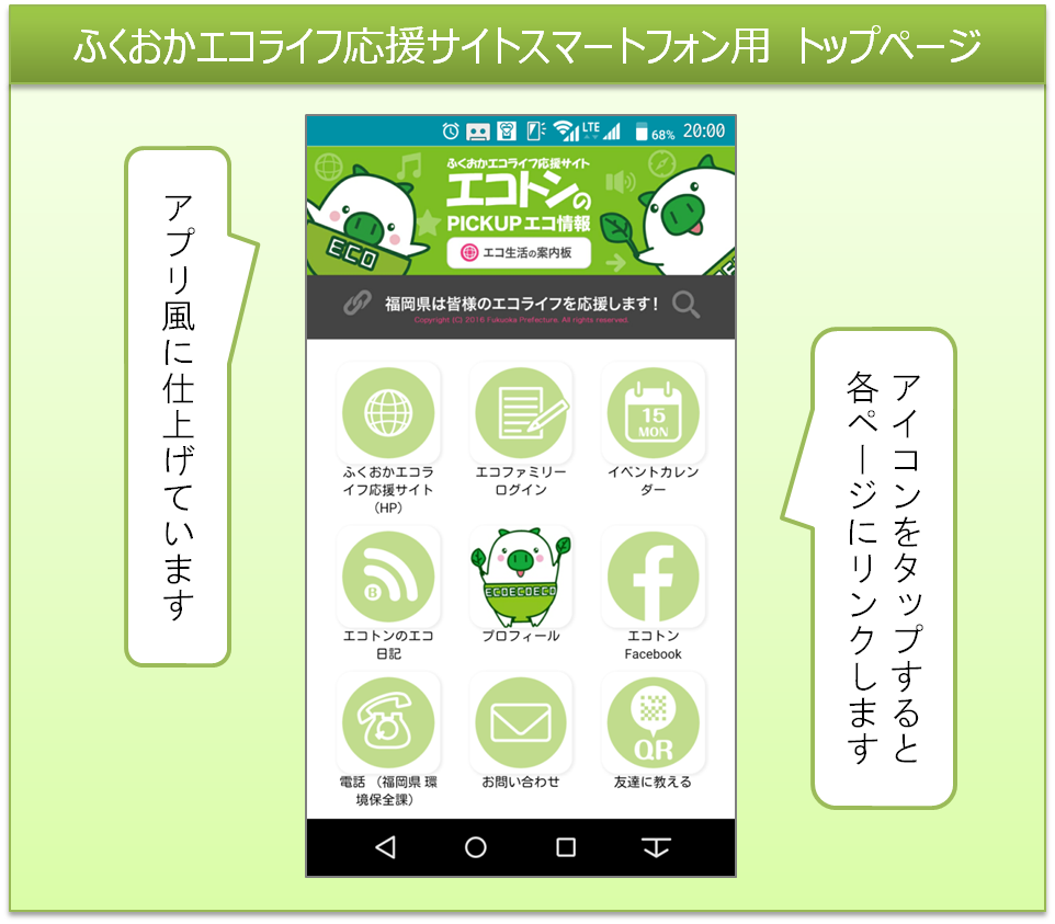 【スマートフォン用ホームページ(ふくおかエコライフ応援サイト)】
