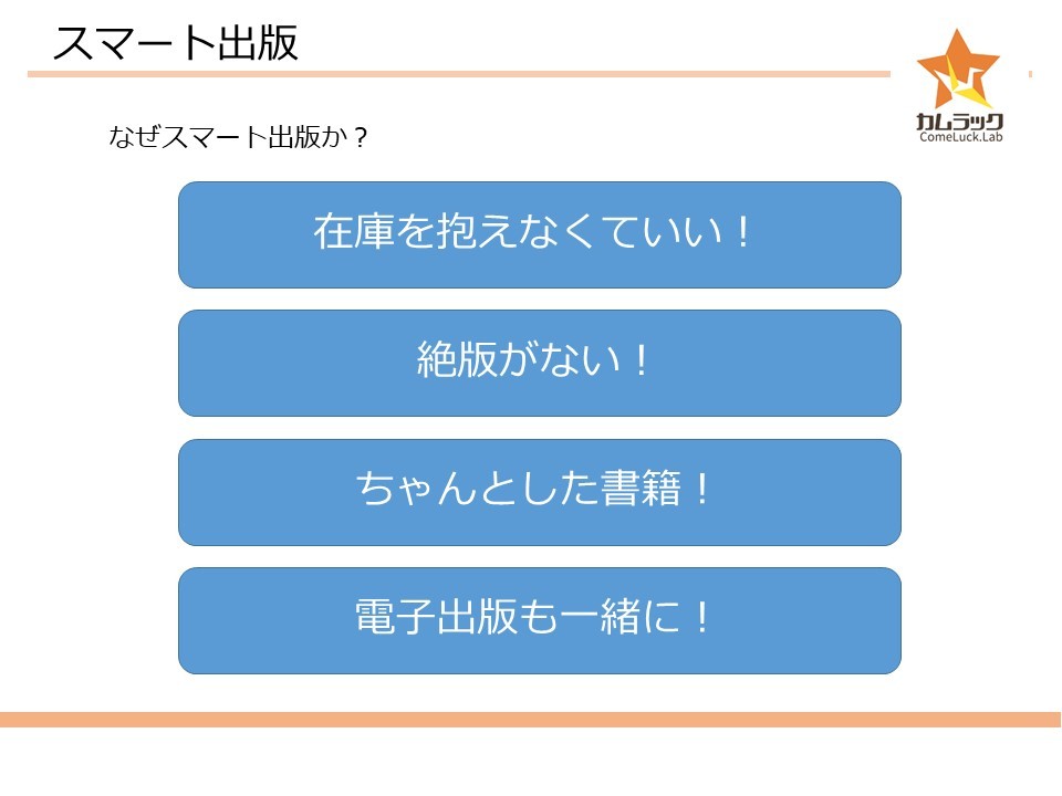 株式会社カムラックが提供するスマート出版を利用します。したがって、書籍を出すことや購入することが、障がい者支援にもつながっているのです。