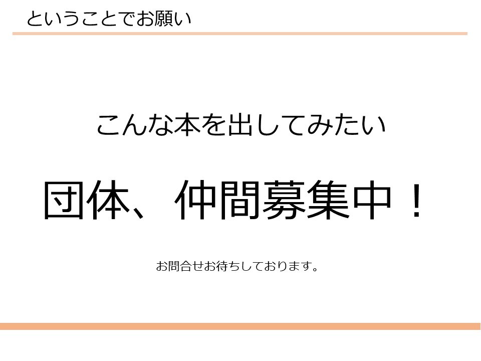 ということで、こんな本を出してみたい団体・グループを募集しております。