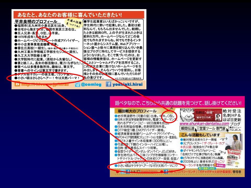 ということで、ウォーミングアップは、二人の名刺からの質問です。