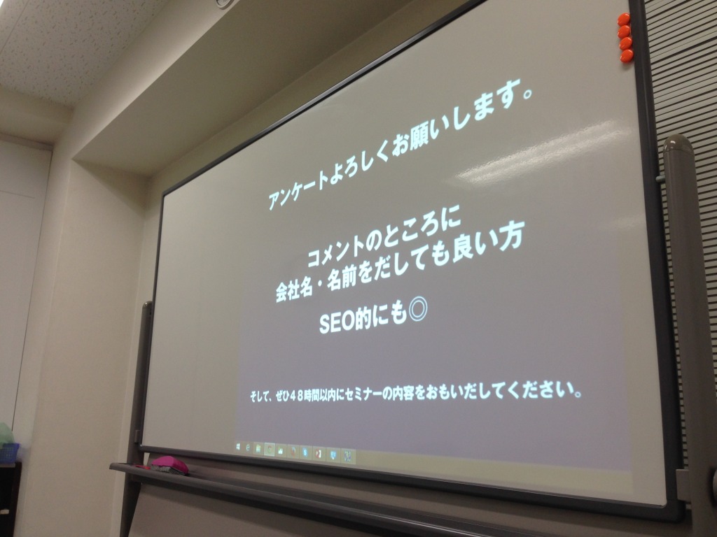 匿名希望様 【満足】具体的な内容が聞けて良かったです。匿名希望様 【満足】今後のホームページ運用について方針をどうすればよいか、BtoB企業ということもあり、考えることも多かったのですが、BtoBでもBtoCでも常に情報を更新していくべきだと改めて参考になりました。匿名希望様 【満足】ド素人でしたが、HP、ブログ、ツイッター、FBのいろいろな意味で違いがわかりました。それぞれを上手く利用しないとダメなんですね。匿名希望様 【満足】あらためて勉強になることが多かった。 Twitter(LIVE感が一番出る)Facebook、Blogの役割の違いなど大変参考になった。