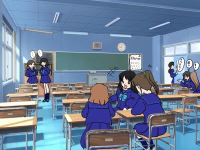 教室の後ろのほうで、仲の良い友達同士での内輪話。
