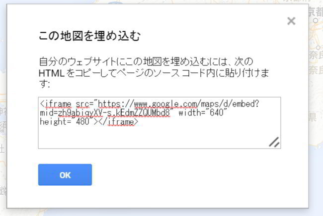 これで、埋め込み終了です。実際に埋め込まれた地図は