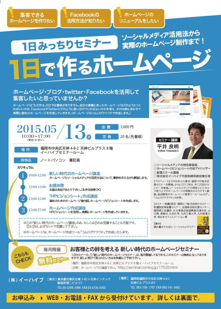 5月13日(水)10:00~ 【福岡】1日みっちりホームページセミナー