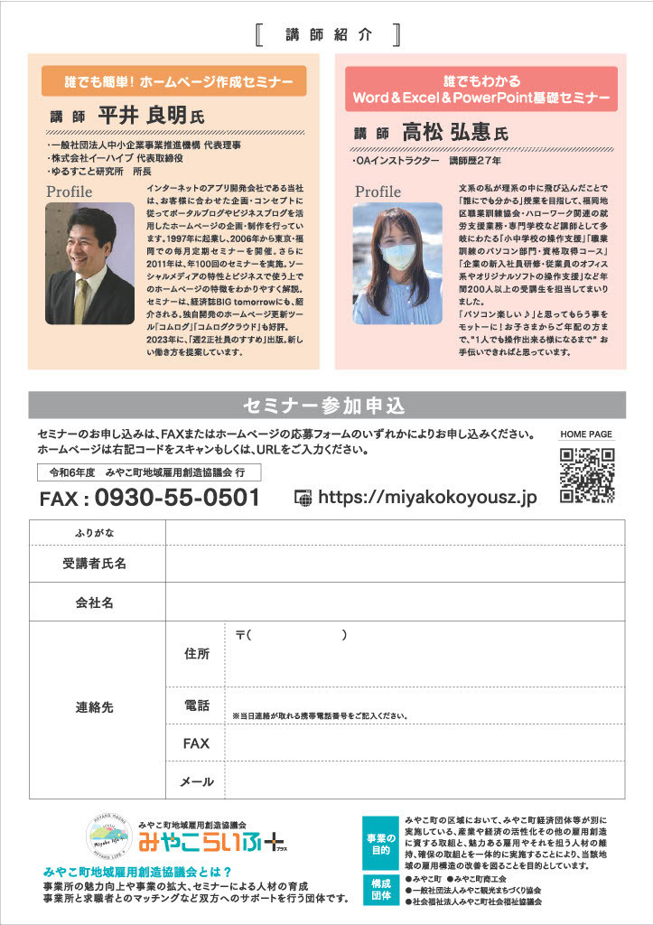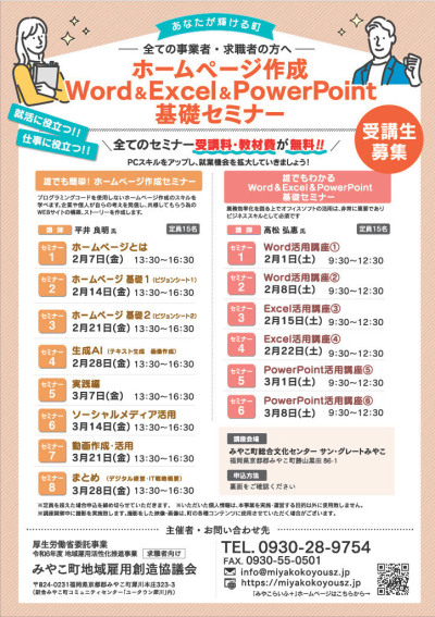 ツイッターアカウントは、@comlog全8回 ホームページ制作セミナー みやこ町地域雇用創造協議会