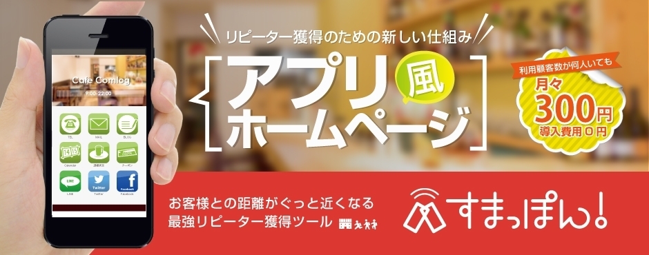 ツイッターアカウントは、@comlog個人企業の時代だからそこも応援したいそんな思いでできた「すまっぽん!」