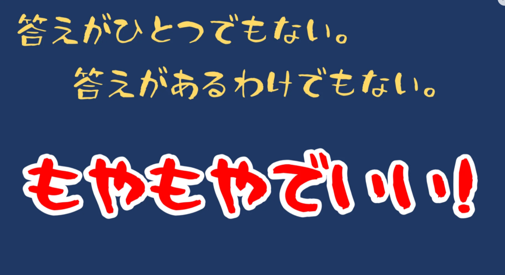 要は、答えがある社会に生きていない。なので、色々対話や問答をしながら、モヤモヤでいいということに気づきました。
