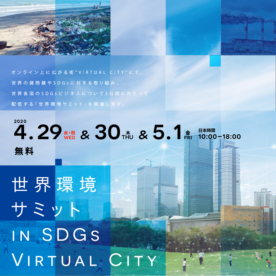 オンライン上に広がる街”VIRTUAL CITY”にて、世界の諸問題やSDGsに対する取り組み、世界各国のSDGsビジネスについて3日間にわたって配信する「世界環境サミット」を開催します。