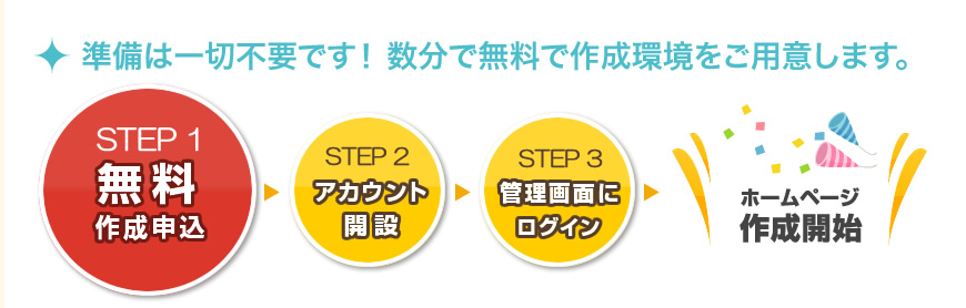 ブログ形式だから、初めてでも簡単作成。やる気さえあれば1日でホームページが完成します。