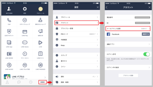 「…(その他) > アカウント > メールアドレス登録」と画面を移動していくと設定をすることが出来ます。