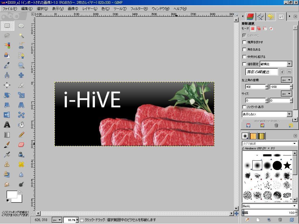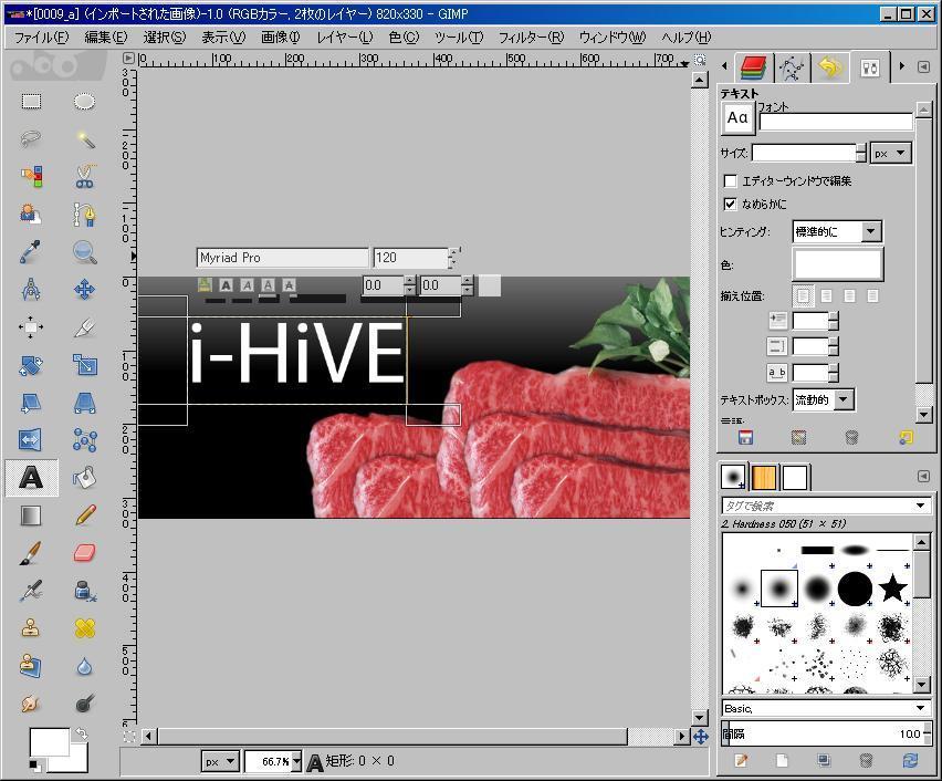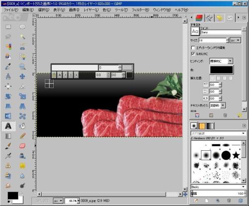 GIMPにファイルを読み込んで、メニューの「A」って書いてある