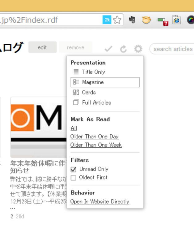 Chromeの場合 : RSS登録のデフォルトリーダーに設定する方法