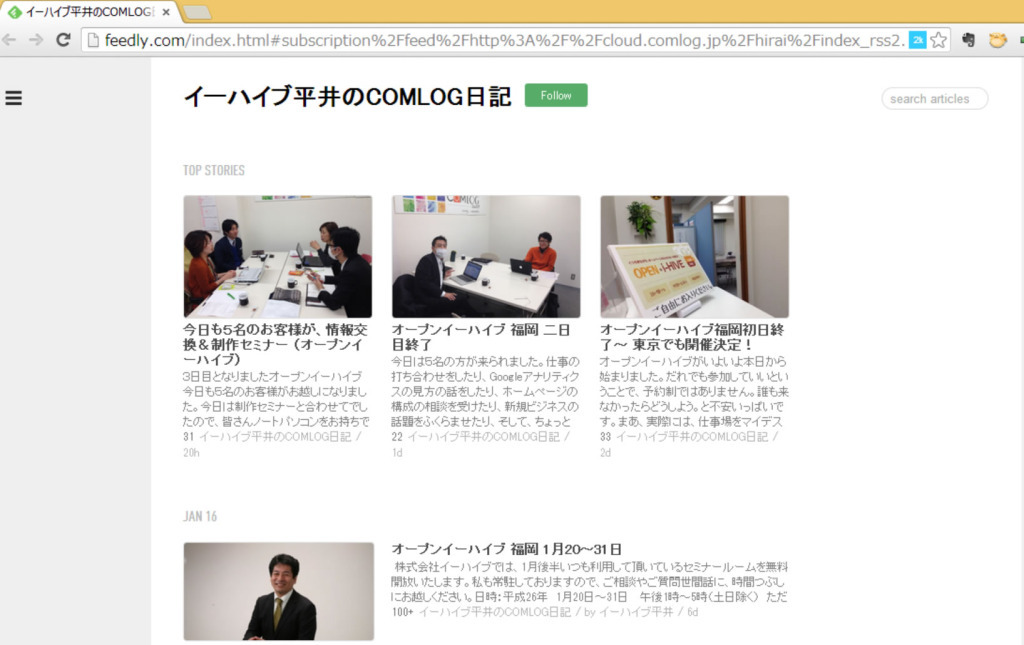 2.読みたいホームページ・ブログにいったら、RSSというボタンや表示を探しましょう。