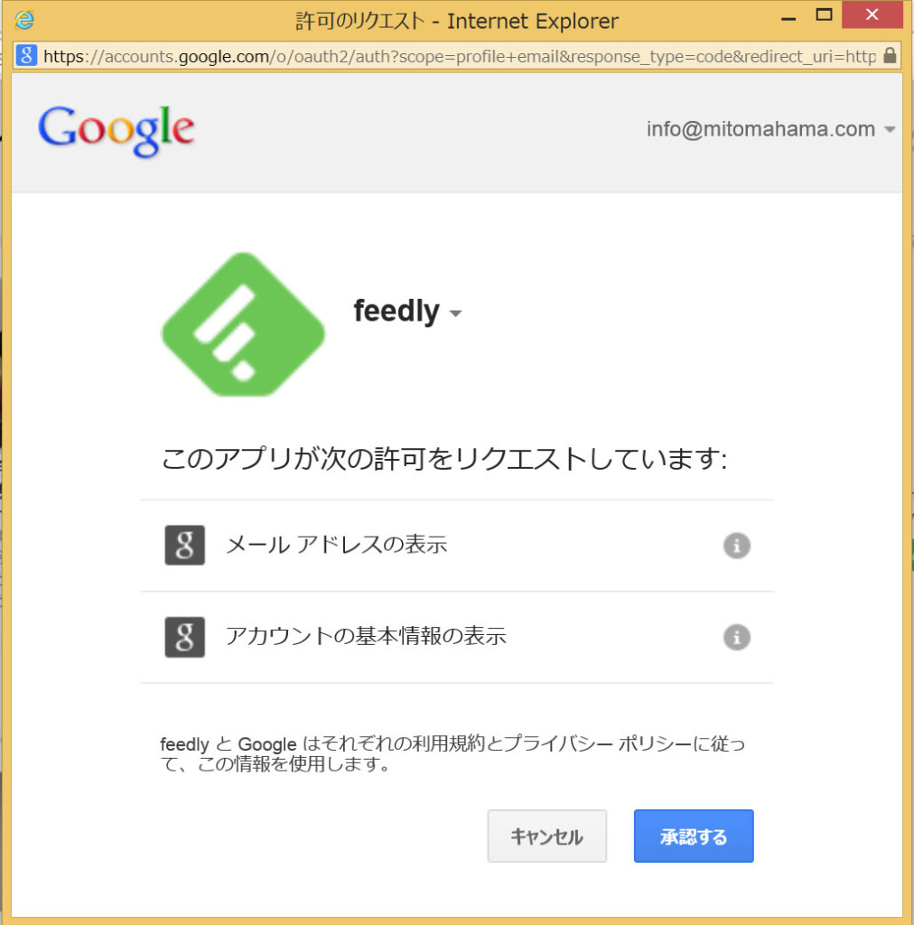 Googleのアカウントで認証登録しますので、アカウント情報を入れましょう。