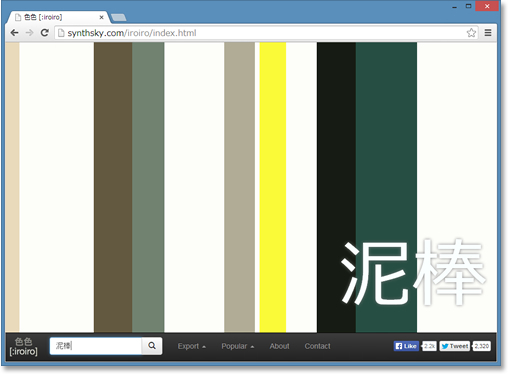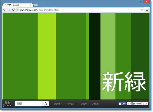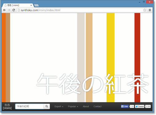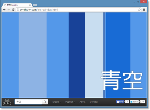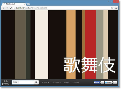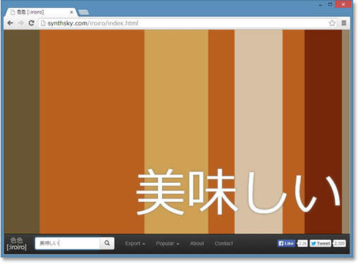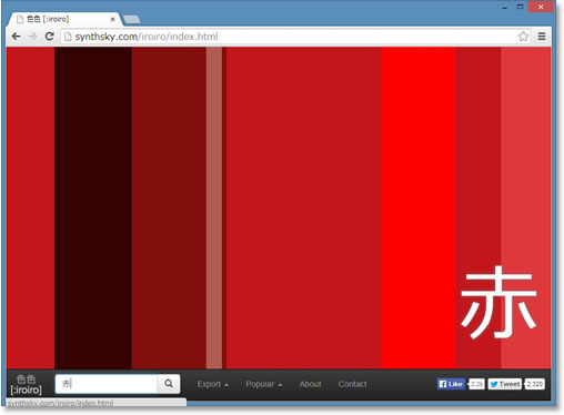 それは、言葉をカラーパレットに変換する『色色[:iroiro]』というサービスです!!http://synthsky.com/iroiro/index.html