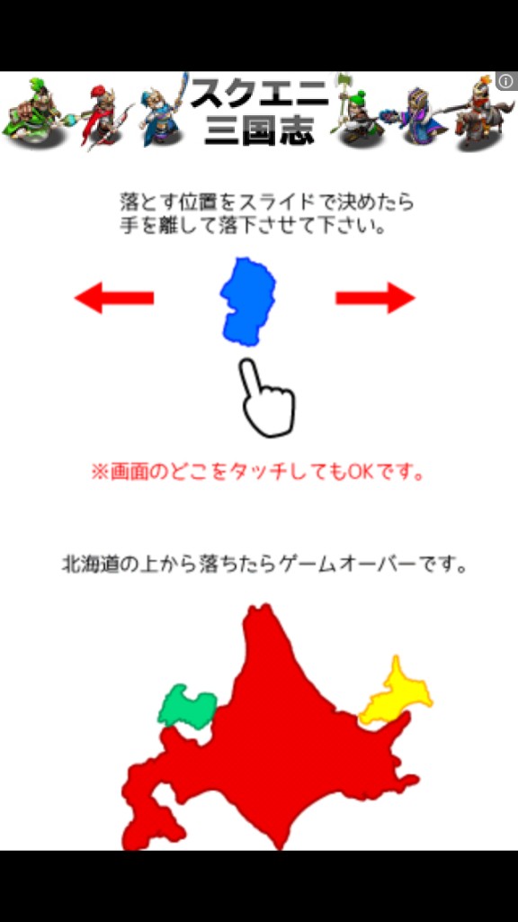 あそびかた:北海道の上に都道府県を積み上げろ!