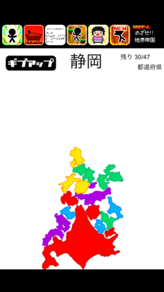 ただ、北海道の上に他の都府県を積み上げていくだけのゲーム。