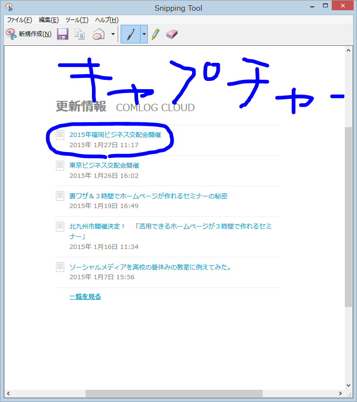 キャプチャーした画像にペンで文字を入力したりといったことも可能です。