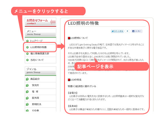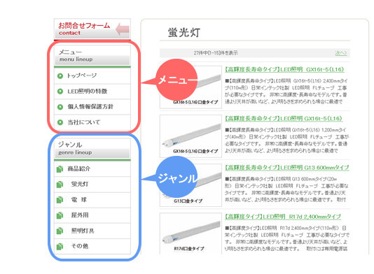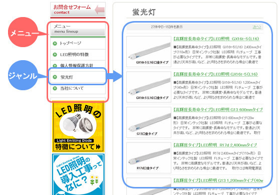たとえば「蛍光灯」に関する記事をたくさん書くので、これを一覧でお客様に見せたいとします。その場合、記事を書く前に「蛍光灯」というジャンルを作成しておく必要があります。