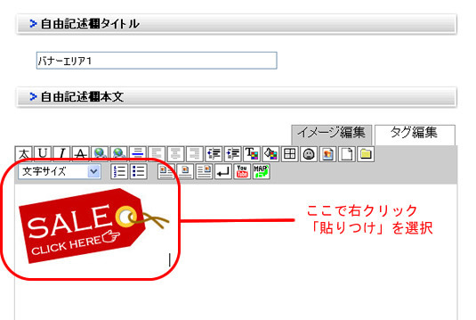 自由記述欄に、赤い「セール画像」が挿入されました♪