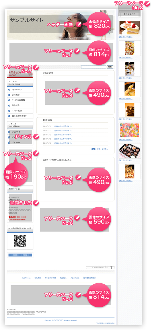 ※書く場所の説明については、マニュアルサイトのテンプレートの特徴をご覧ください。