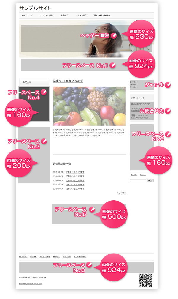 ※書く場所の説明については、マニュアルサイトのテンプレートの特徴をご覧ください。